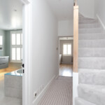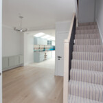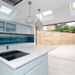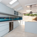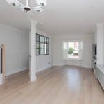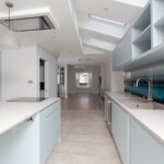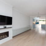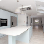 A complete house refurbishment to incorporate an unused side return. The open plan ground floor was made possible by installing a sprinkler system. Wonderful choice of colours and a modern look for the couple who are now loving their new home.
