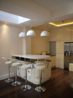 complete refurbishment – side extension, partial dig out of cellar, renovation and redecoration throughout. Upgrade to roof terrace.